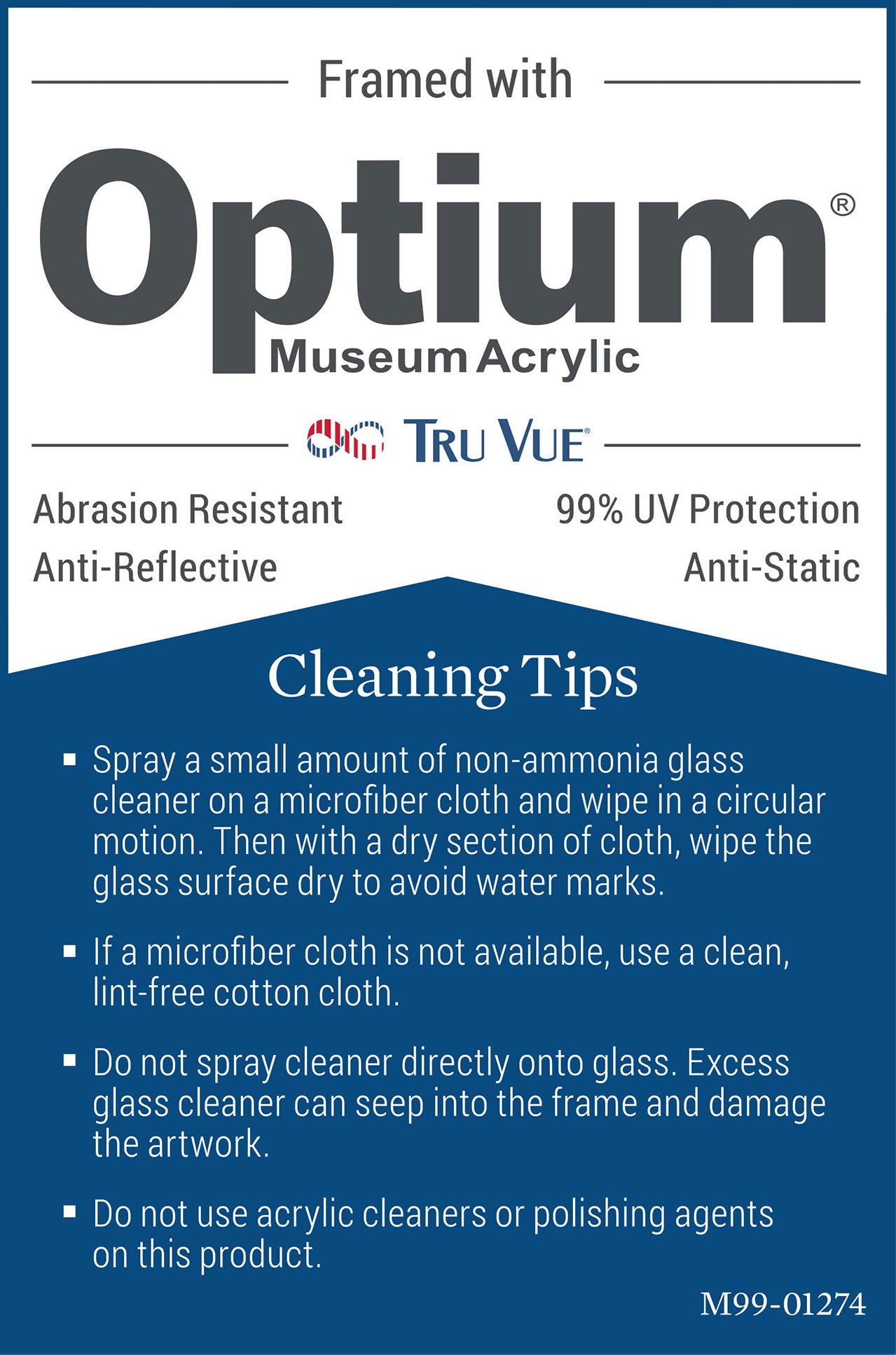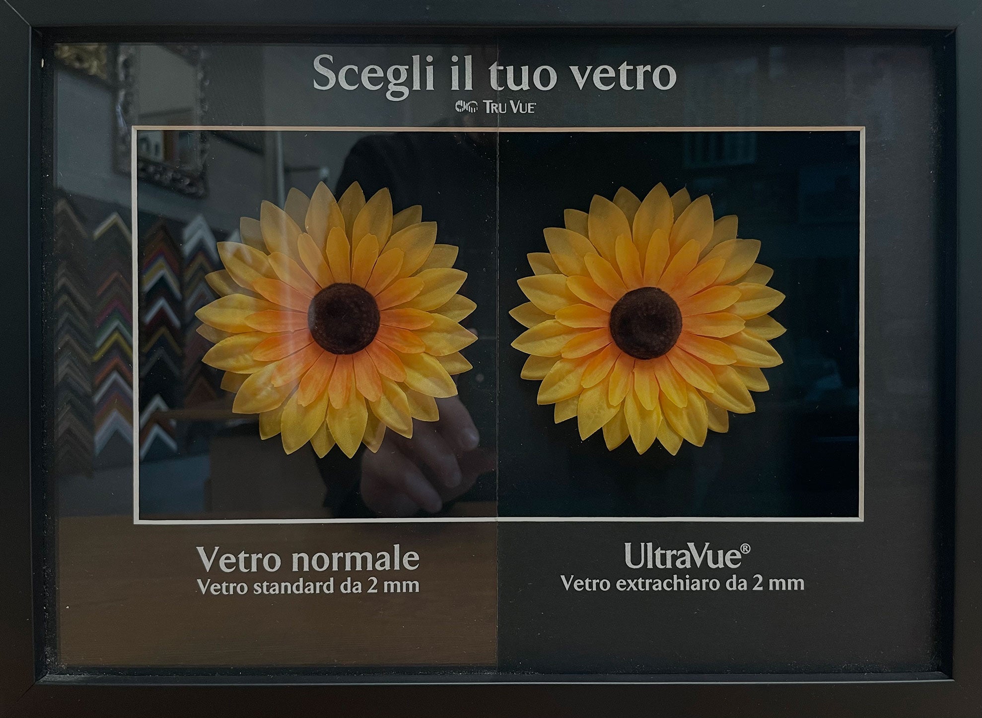 lastre acriliche Optium™ e vetri museali Tru Vue™, invisibili e conservativi (Star Art Services è il più grande importatore italiano di vetri e lastre acriliche museali e li distribuisce ai corniciai italiani);